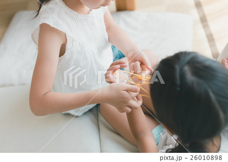 あやとりで遊ぶ子供 昔遊びのイメージ