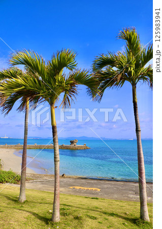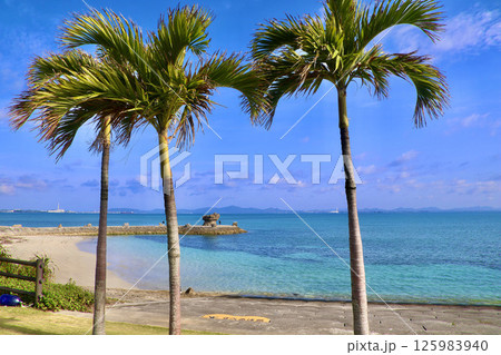 海中道路ビーチ・ヤシの木(沖縄県・うるま市)
