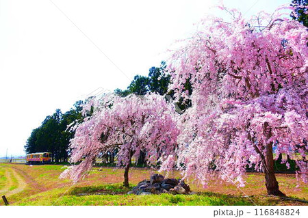満開の桜 フラワー長井線 山形鉄道 羽前成田駅