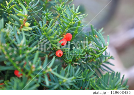 赤い実をつけたイチイの木