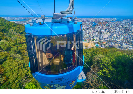 徳島県徳島市眉山町のあわぎん眉山ロープウェイから山頂駅方面を見る