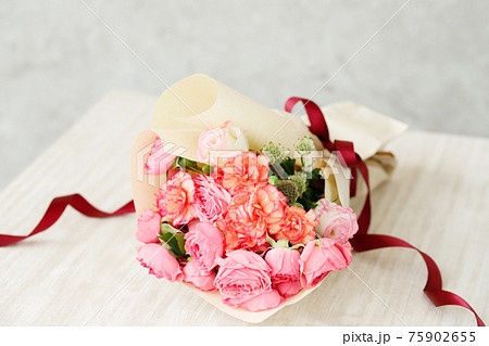 プレゼントやイベントの背景に使えるピンクの花束の素材