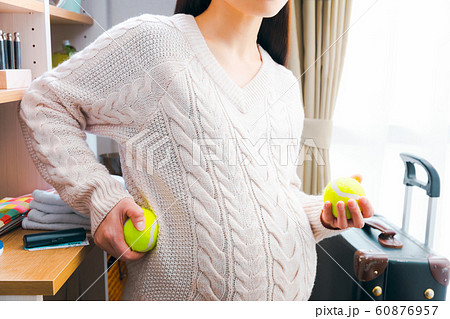 テニスボールを持つ妊婦 マッサージ 出産準備 いきみ逃し