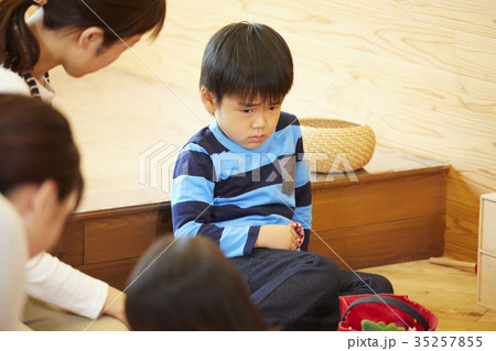 寂しそうな園児(子供・育児・子育て・保育園・幼稚園)