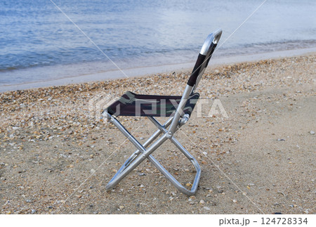 Folding chair by the sea. Convenience to the tourist. Rest by the sea.