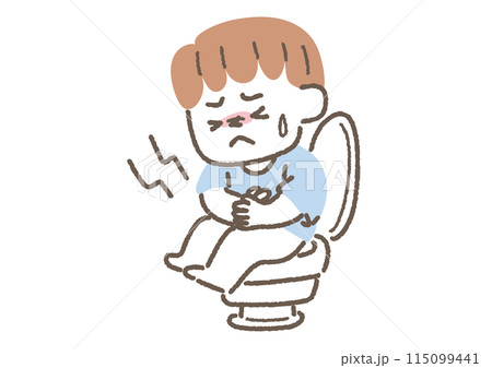 トイレでお腹が痛くなっている男の子のイラスト