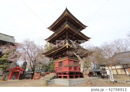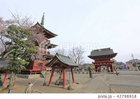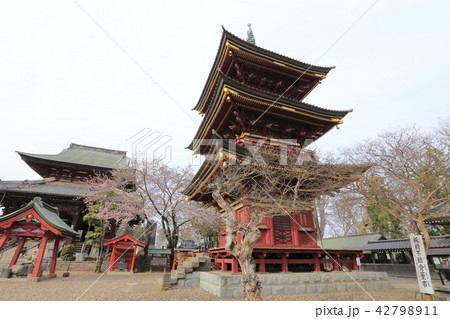 板橋不動尊 三重塔と桜 茨城県つくばみらい市