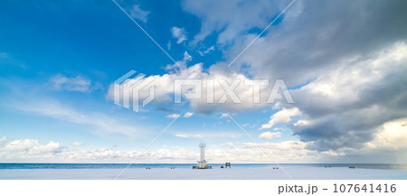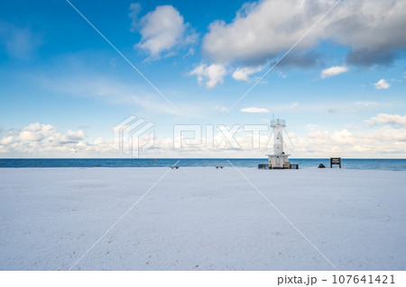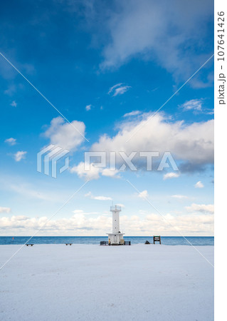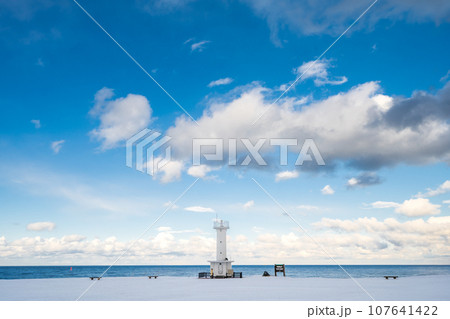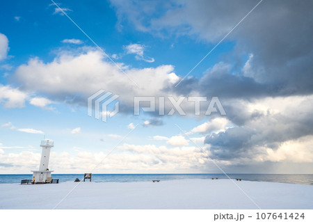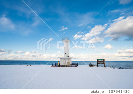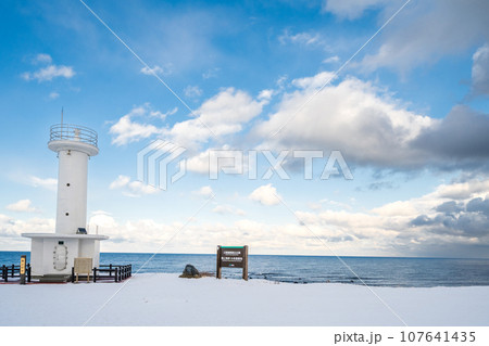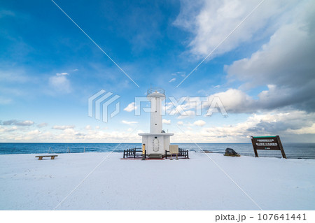 「青森県」冬の階上灯台の風景 小舟渡海岸