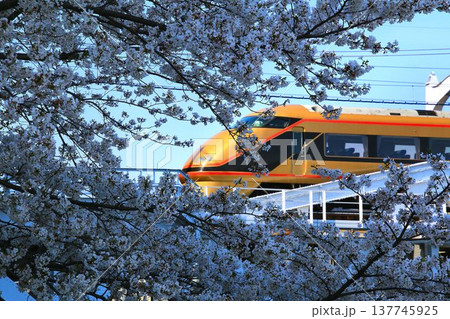 隅田川の桜を眺め征く… 東武特急【スペーシア】100系