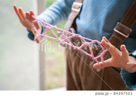 あやとりをする女性