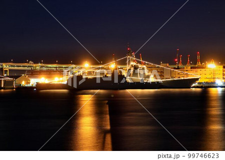 電灯艦飾が美しい『イージス護衛艦あたご』 ~横浜港・山下ふ頭にて