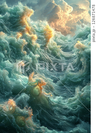 Mesmerizing Deep Space Scene with Glowing Green Waves and Dramatic Cloud Formation