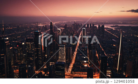 A Stunning Aerial View of an Urban Cityscape at Beautiful Twilight, Captured Perfectly