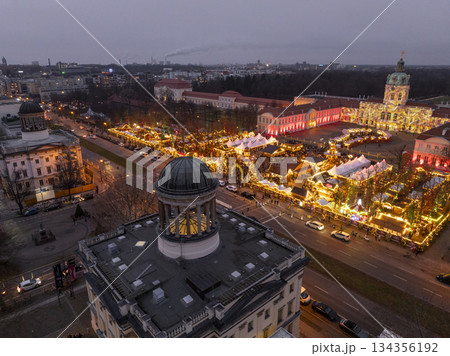 Christmas market in Berlin. Aerial Shot of Weihnachtsmark on Charlottenburg Palace. Winter Holidays in Berlin, Germany.