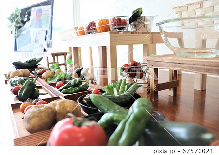 おしゃれな色とりどりの野菜マルシェの画像です。