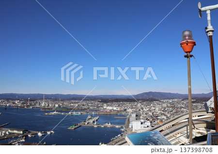 三崎公園・マリンタワーの展望台から見下ろす小名浜の街(福島県いわき市)