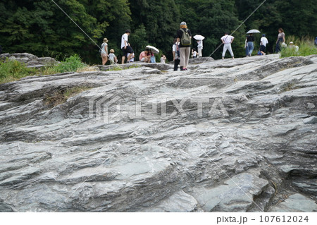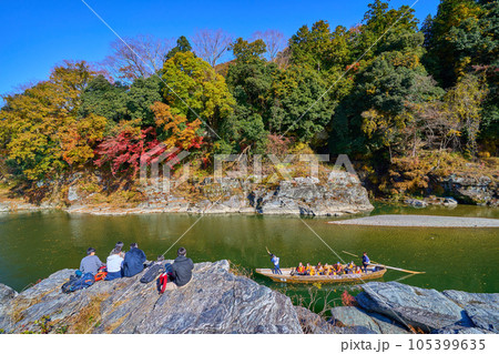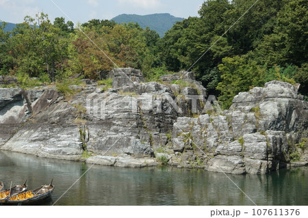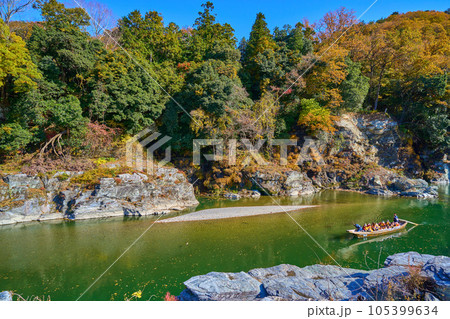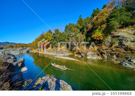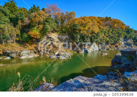 秋の埼玉県長瀞町の長瀞ラインくだりを岩畳から見る