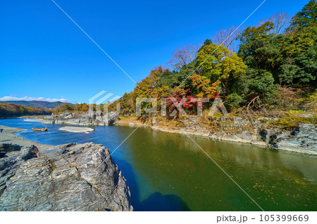 紅葉の長瀞 紅葉と青空の岩畳
