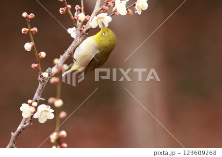 梅の蜜を吸いにやってきた可愛い小鳥、メジロ