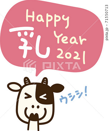 牛年、初笑い年賀イラスト「Happy 乳(にゅう) year!」
