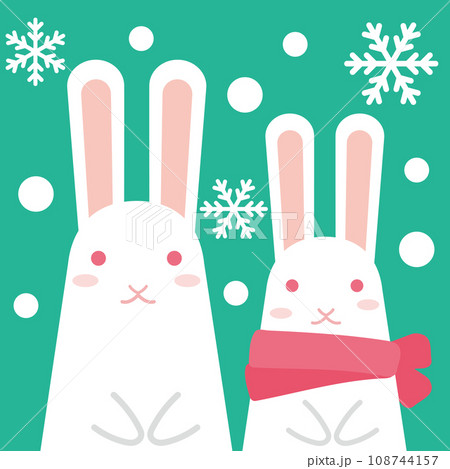 クリスマス模様アイコン_雪の中の白うさぎ2匹_背景色クリスマスグリーン