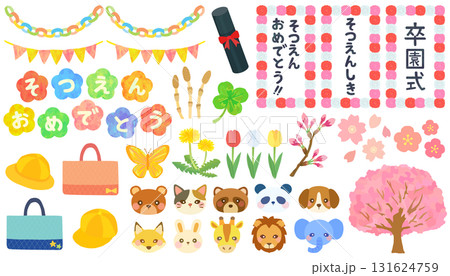 卒園式のイラスト素材セット ベクター