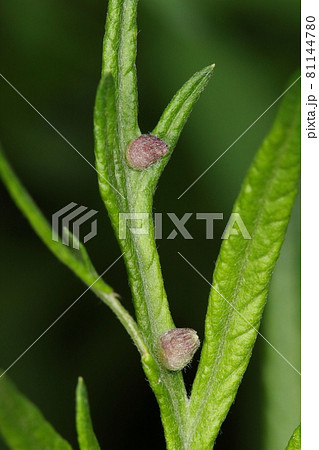 生き物 昆虫 ヨモギハエボシタマフシ、ヨモギハエボシタマバエが作る虫こぶ。色は緑色から赤茶色まで色々