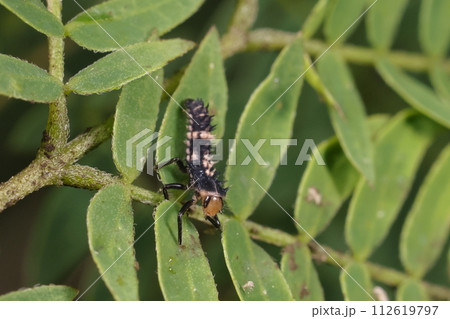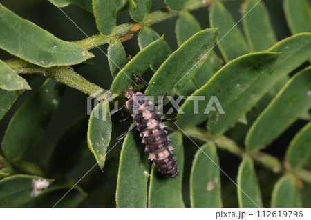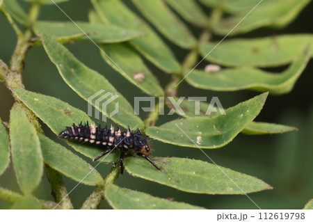 生き物 昆虫 ダンダラテントウ、幼虫です。若干細身で頭が大きく見えるのは中齢?