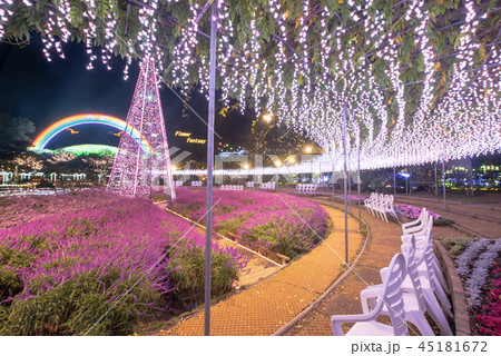 あしかがフラワーパーク イルミ うす紅の棚 アメジストセージ