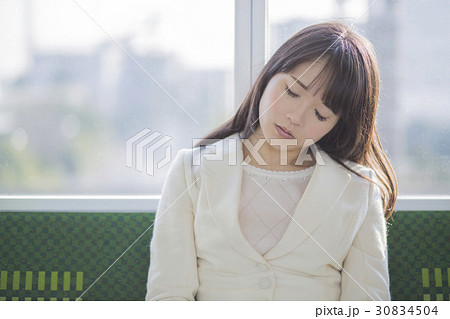 電車で居眠りする女性