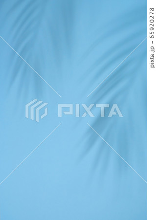 Several horizontal and vertical sheets of white textured paper against a blue wall background. Mockup with an overlay of plant shadows. Natural light casts shadows from an exotic plant