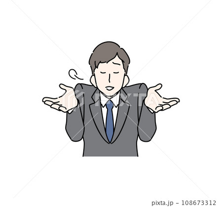 やれやれのポーズをする男性のイラスト(ビジネスマン、スーツ)