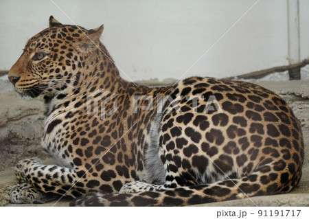 雨の動物園 ヒョウが恨めしそうに外を眺める