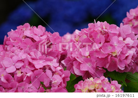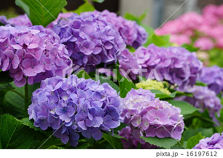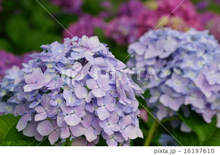公園に咲く梅雨の晴れ間の紫陽花あじさい