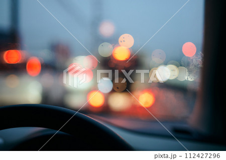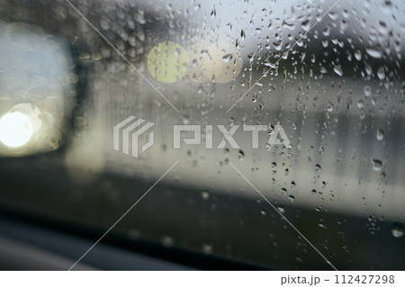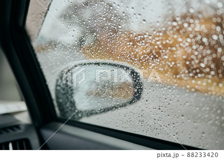 雨で濡れた車の窓ガラス 梅雨イメージ