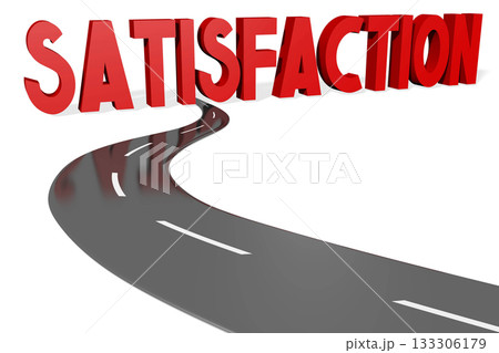 Satisfaction - road and red word on white background