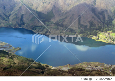 信州の湖 安曇野の北端 木崎湖 仁科三湖の南の湖 小熊山展望台より (観光客入り)