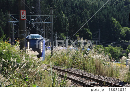 すすきの中を走るあずさ号 大糸線海ノ口駅付近(長野県大町市)