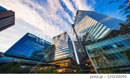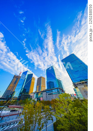 青空と大阪駅北区の都市風景