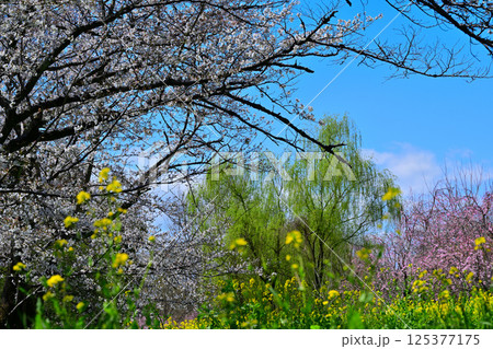 満開の桜と菜の花の風景