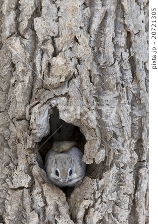 木の巣穴からひょっこり顔を出したエゾモモンガ