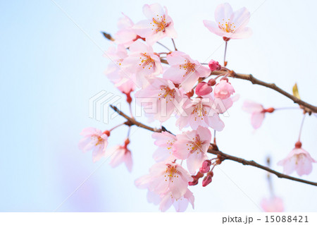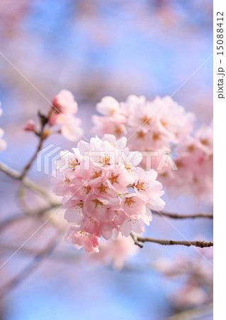 満開のエドヒガンザクラのクローズアップ 【青空背景】 【空背景】