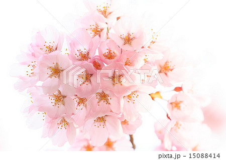 満開のエドヒガンザクラのクローズアップ 【空背景】 【白背景】