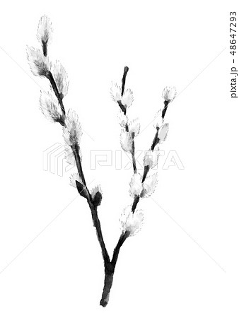 猫柳 ネコヤナギ 水墨画 墨