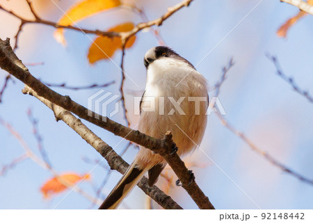 愛くるしい仕草で小さな白い鳥 エナガ