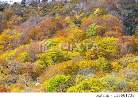 宮城蔵王の紅葉 えぼしスキー場から見た後烏帽子岳方面の紅葉 宮城県蔵王町