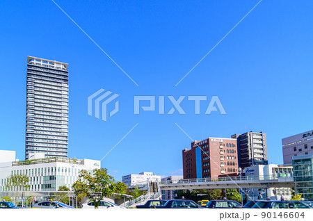熊本駅周辺(白川・タワーマンション・ビル)「晴天の駅前周辺風景」日本・九州・熊本県
