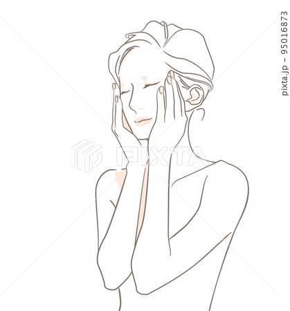 丁寧なスキンケアをする美しい女性 ほうれい線