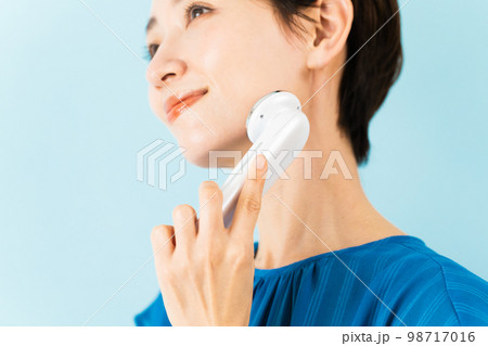 丁寧なスキンケアをする美しい女性 フェイシャルスチーマー