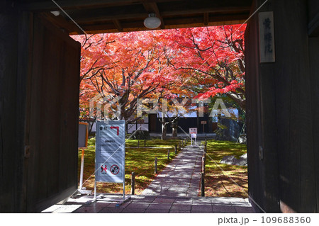 秋に京都市大徳寺 黄梅院表門から望む前庭